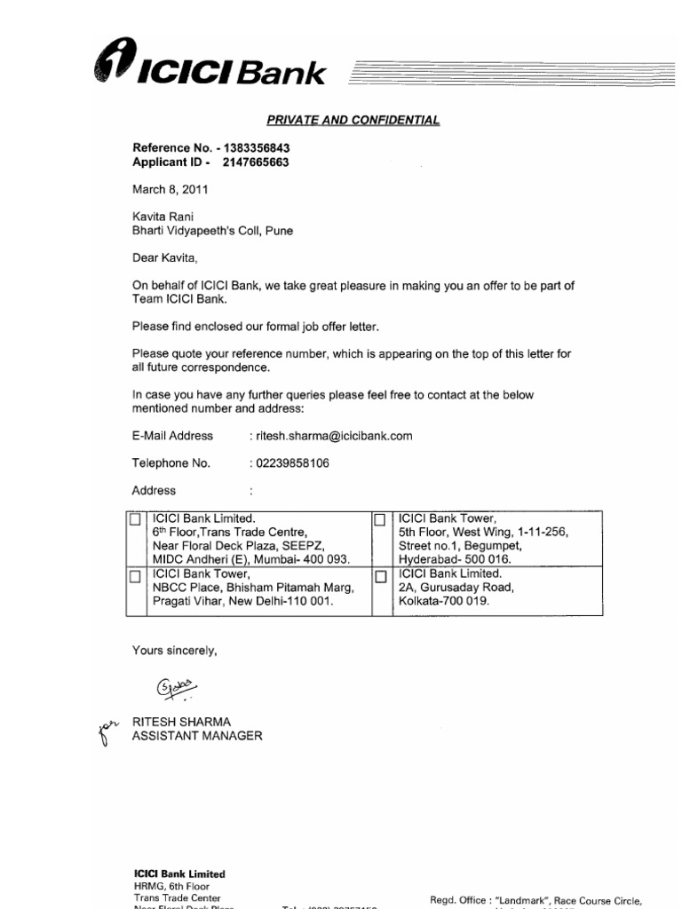 Bank Job Offer Letter Format Templates At Allbusinesstemplates Com