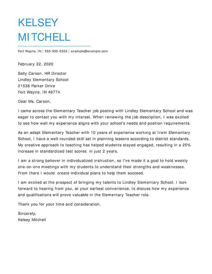 Elementary Teacher Cover Letter