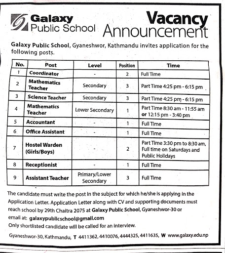 Mathematics Teacher Lower Secondary Job Vacancy In Nepal